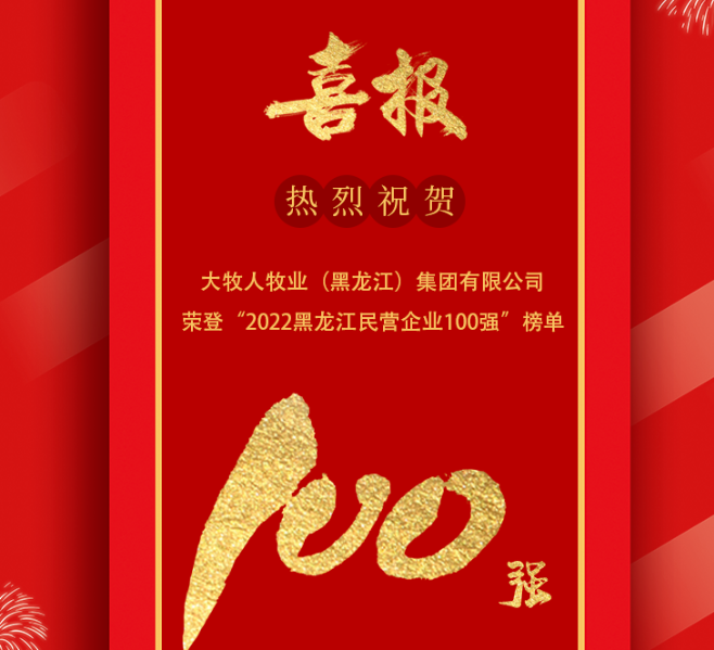 喜報(bào)!大牧人牧業(yè)(黑龍江)集團(tuán)有限公司榮登“2022黑龍江民營(yíng)企業(yè)100強(qiáng)”榜單